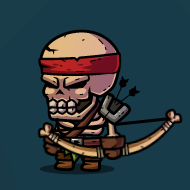 Starts with a Bone Bow and a quiver of bone arrows, allowing him to one-shot most enemies from the very start of the game. He can harvest bones from fallen enemies and use those to make his weapon stronger. He also starts with 90% melee, which allows him to save on collected bones early in the game and get really strong.