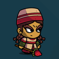 Starts the game with the Strawberry Staff which can create food for herself and other players. The food restores the hitpoints lost during combat. However, she's not limited to healing. She can find and pick up any other magic staff during the game and use it to cause serious damage to the enemies. She also starts with 70% archery, so she can use bows and arrows as well as the Knight can. She's a true ranged-combat character.